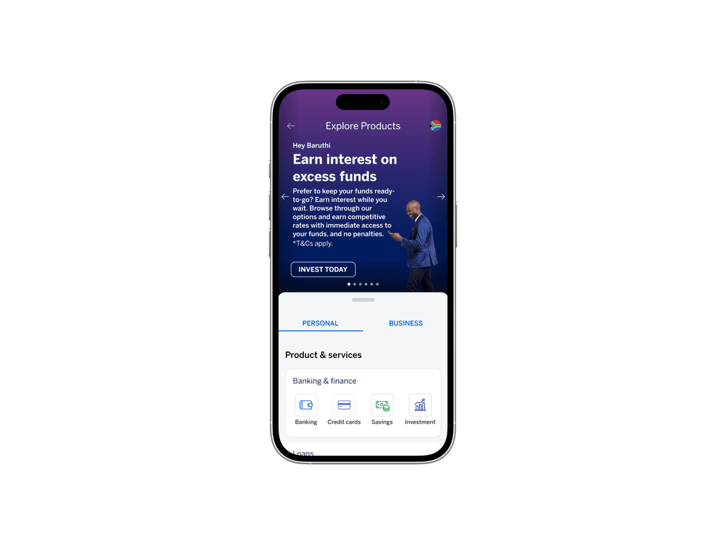 Explore Products is a main part of the mobile banking app, offering 100+ personal and business products across 12 African countries.
