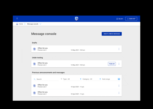 I designed a staff message console for internal teams - marketing, fraud prevention, and personalisation groups. Despite the tight 1-2 month timeline, the interface was so intuitive that stakeholders delivered hundreds of messages without operational issues.